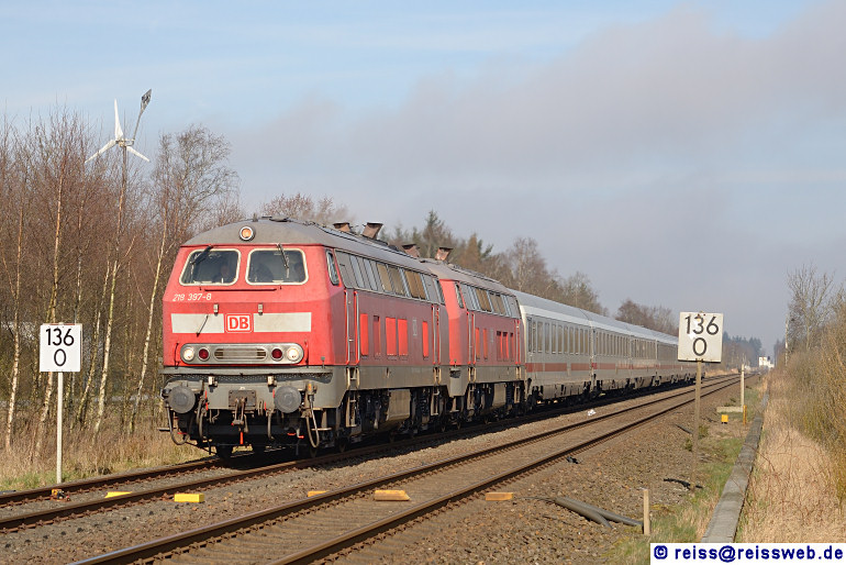 218 397 & 315 bringen den IC 2375 Westerland Karlsruhe von Westerland nach Itzehoe, wo eine Elektrolok übernehmen wird (Rehm-Flehde-Bargen, 27.03.2017).