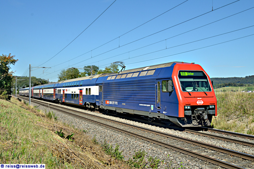 SBB 450 047 & 055 sind mit einer S9 von Schaffhausen nach Uster unterwegs (Jestetten, 10.08.2023).