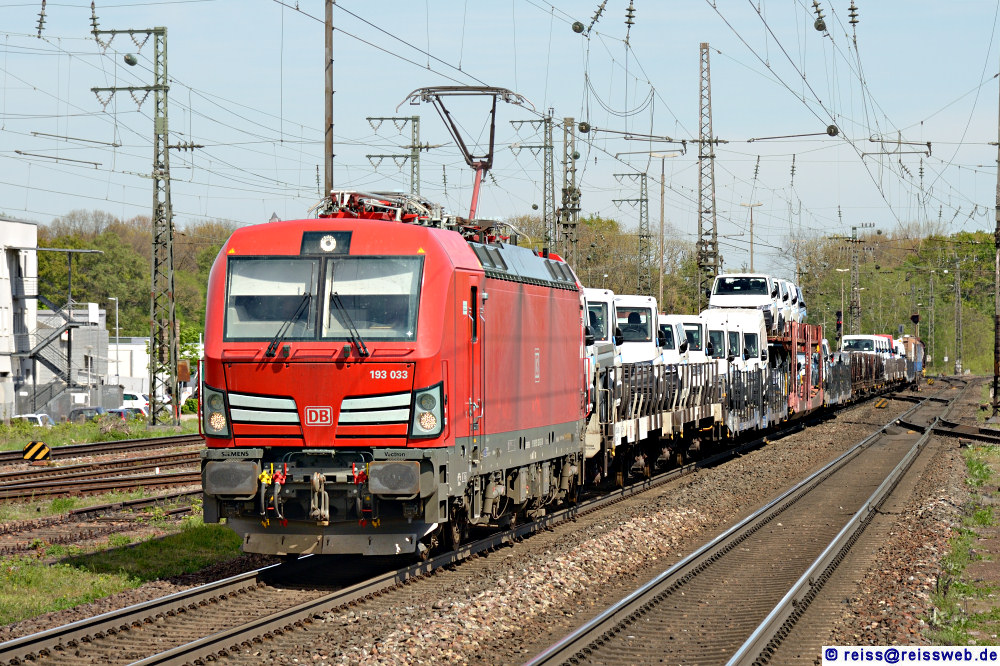 DB Cargo 193 033 führt einen gemischten Güterzug durch Rastatt nach Süden (11.04.2024).