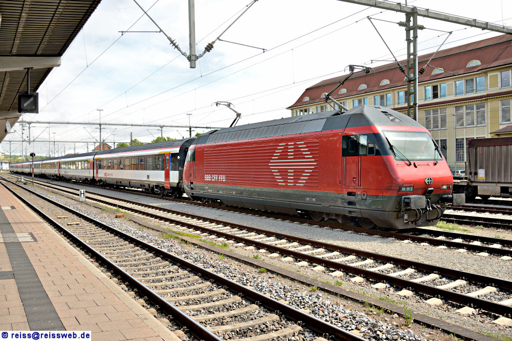 460 058 steht in Singen (Hohentwiel), offentsichtlich für mehrere Stunden abgestellt (beide Stromabnehmer gehoben, sieht man normalerweise nur im Winter bei der frostsicheren Abstellung) [02.05.2024].