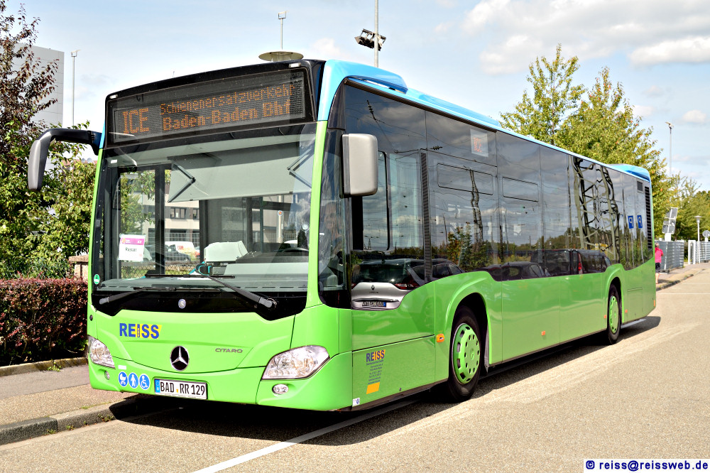 | ICE-SEV zwischen Baden-Baden und Rastatt. Zielanzeige ist vorbildlich, während der überwiegende Teil der SEV-Busse ein Pappschild ohne ICE- oder Regio-Kennzeichnung (manchmal fehlte sogar der Zielort) hinter der Frontscheibe hatten (Baden-Baden, 21.08.2024). |