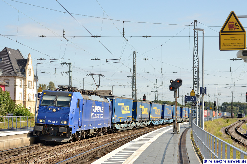 Rhenus 186 268 bringt einen KV durch Rastatt nach Süden (15.09.2024).