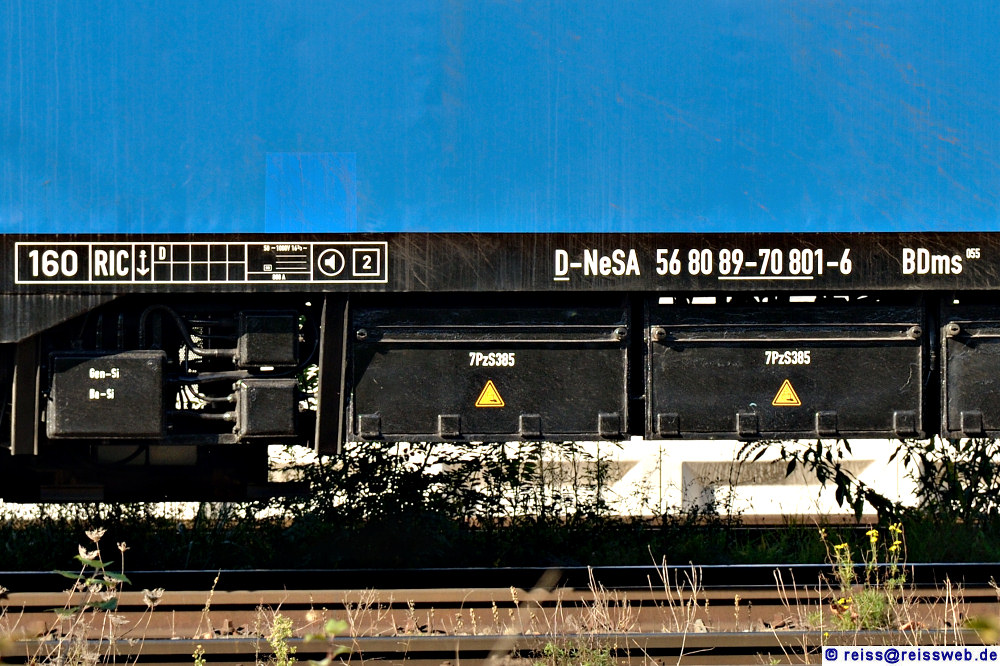 Wahrscheinlich frisch aus der Waggonfabrik Rastatt gekommen, ein BDms 055 56 80 89-70 801-6 D-NeSA; zusammen mit einem weiteren baugleichen Wagen und von 152 093 gezogen ging es von Rastatt aus Richtung Offenburg (28.10.2024).