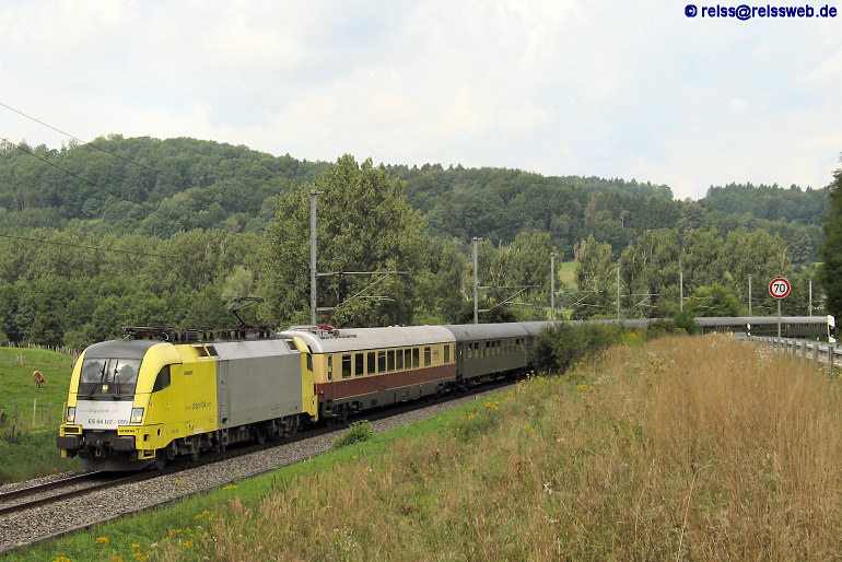 Ebenfalls zur Streetparade war Dispolok ES 64 U2 - 95 unterwegs, sie hatte 11 Wagen am Haken (Jestetten, 13.05.2005).