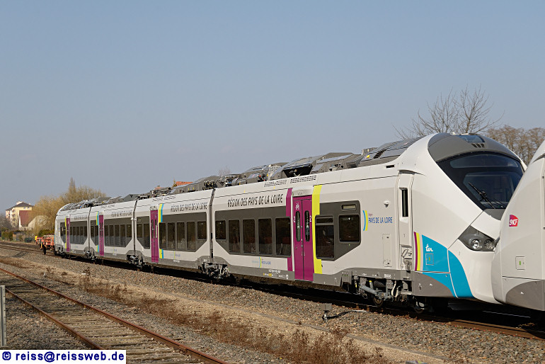 Régiolis 84545M [Pays de la Loire] wird von Reichshoffen vermutlich zu einem SNCF-Technicentre überführt (Haguenau, 13.03.2015).