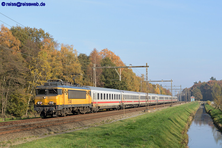 NS 1746 hat in Bad Bentheim den aus Berlin Südkreuz kommenden IC 148 übernommen und bringt ihn nach Amsterdam (Oldenzaal, 31.10.2015).