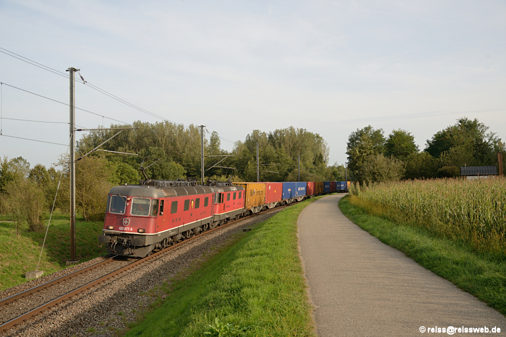 620 077 & 420 332 von SBB Cargo bringen einen Rastatt-Umleiter nach Singen (Jestetten, 27.08.2017).