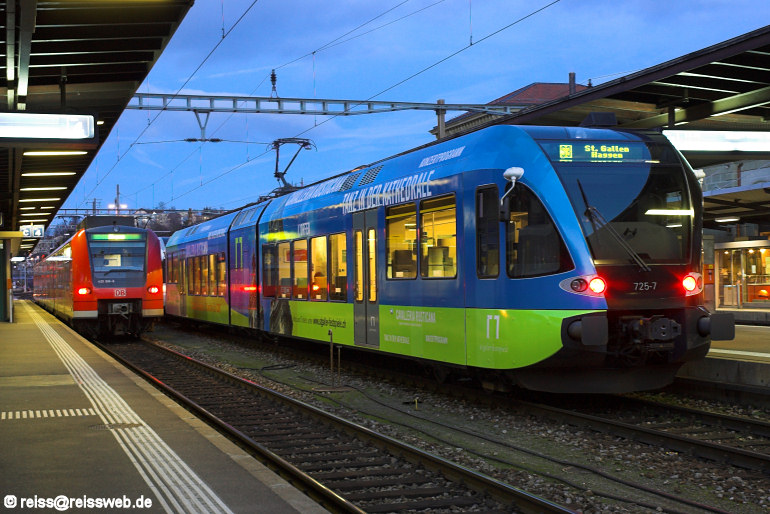 Thurbo-GTW 2/6 526 725 macht Werbung für das Theater St. Gallen, für 2007 wurde das Design an die aktuelle Spielzeit angepasst. Am Abend des 21.01.2007 steht er abfahrbereit in Schaffhausen.