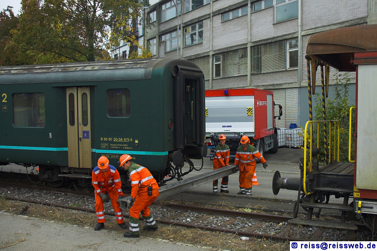 Für die anschliessende Hauptübung 2007 wurden die Eingleisungsgerätschaften entfernt, die Wiedereingleisung erfolgte nach Abschluss der Feuerwehrübung (Neuhausen, 27.10.2007).