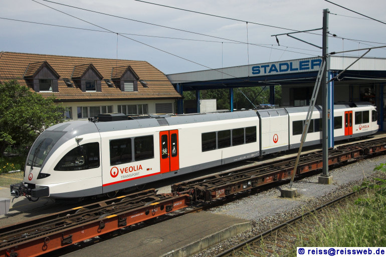 Auch für Veolia NL ist die Fertigung der elektrischen GTW-Variante schon recht weit vorgeschritten, am 29.05.2008 steht eines dieser Fahrzeuge in Bussnang vor den Hallen des Stadler-Werkes.