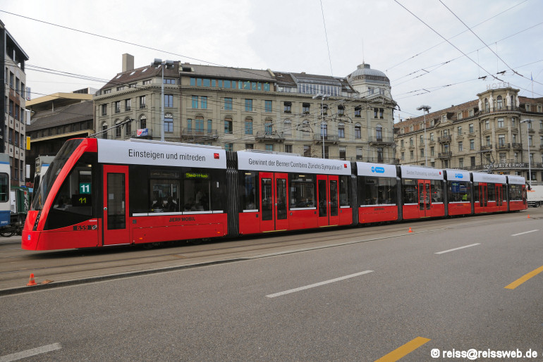 Das Bernmobil-Combino auf dem Zürcher Bahnhofsplatz (19.03.2010).