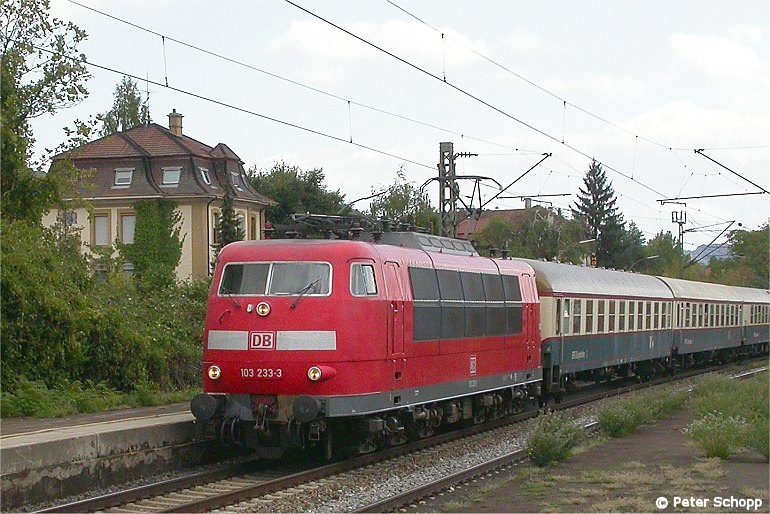 103 233 bringt den Sonderzug DZ 18809 von Basel nach Minden. Aufnahme von Peter Schopp in Haltingen (31.08.2003).