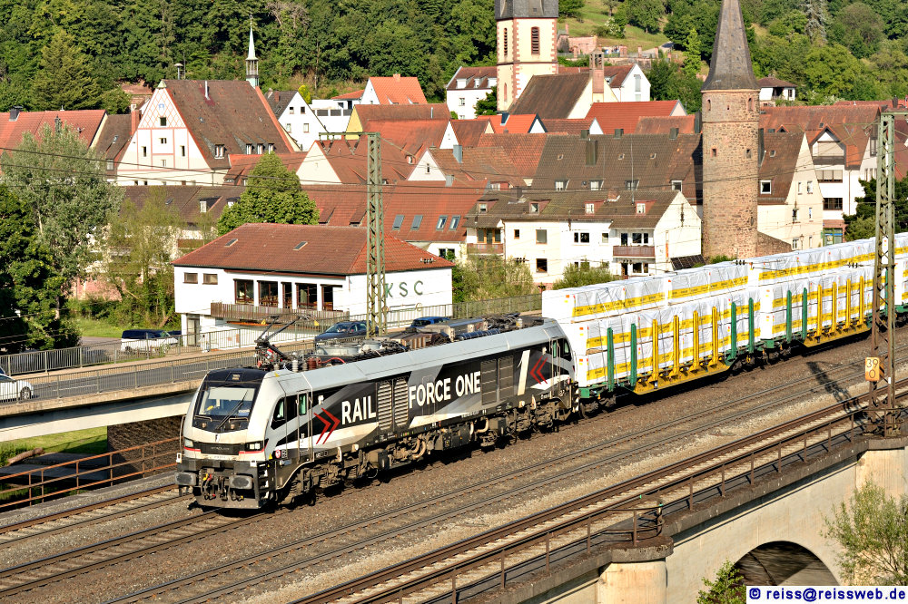 RFO 2159 257 bringt einen Schwaiger-Holzzug durch Gemünden (Main) nach Norden (12.06.2025)